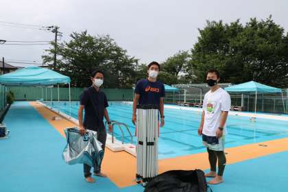 本日の夏季水泳教室3日目前半は、水温・気温ともに基準を満たしていますので予定通り実施いたします。予報では小雨が降る時間があったり、風を感じることもあるようです。健康観察をしっかりお願いいたします。先生たちは7時前から準備をして子供たちを待っています。