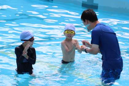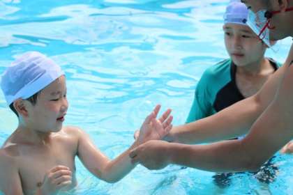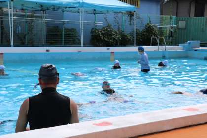 たくさんの先生たちがグループ毎に見てくれます。合格した子には手首に輪ゴムを1つかけてもらい、また次の検定に挑戦です。