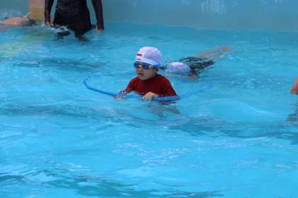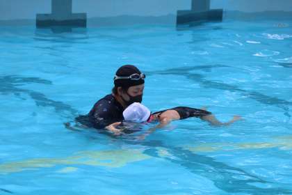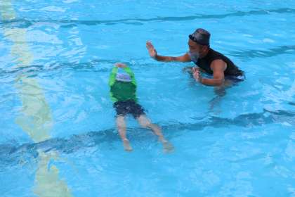 学校の水泳指導が昨年度できなかったため、水に対して恐怖感のある子、顔を水につけるのが苦手な子がたくさんいます。しかし夏季水泳2回目で、顔を水に付けられるようになり、もぐったり、ふし浮きまでできるようになった子もいます。子供たちのがんばりは素晴らしいです。