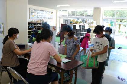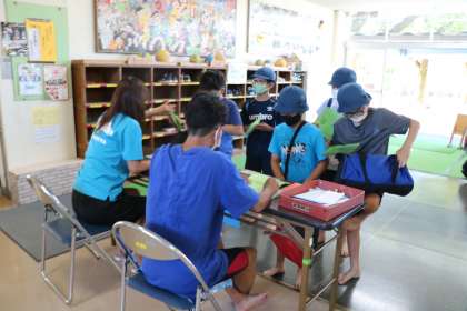 今日の水泳教室1回目、4年生の受付の様子です。時間になるまでお喋りをせず静かに待つ4年生です。落ち着いた行動ができるところがさすがです。