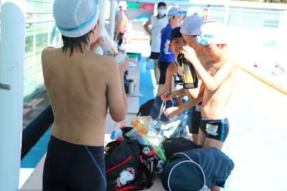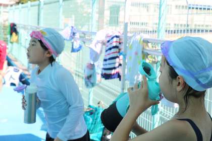 水の中は思っている以上に汗をかいているそうです。水分補給をしっかりします。