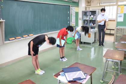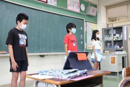 2学期はZOOMでの始業式です。司会の副校長先生・5年生代表児童、放送担当、私と、それぞれ別々の部屋から行いました。私は、砧小学校のみんなが集まれたこと、この状況の夏休みに大きなケガなく勉強と運動を頑張ったことに感謝し、夏休み前の約束「家族を大切にすること」を頑張ったこと、2学期は「全力で自分のやりたいことに挑戦する」「少しの優しさを分けてあげられる人になる」ことを頑張ろうと、話しました。