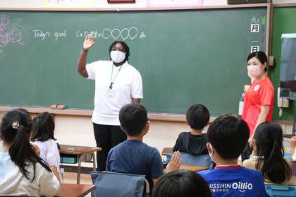 3年生外国語活動の様子です。ジョアン先生が担任の先生とスイッチすると、子供たちから「ハーイ・・・」などと英語であいさつが飛び交います。子供たちはすごいです!自然体です。