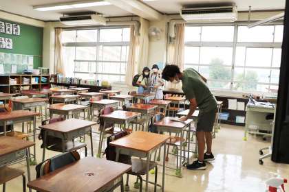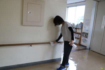 子供たちの下校後、消毒作業を頑張る教職員の様子です。