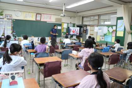 5年生の様子です。夏休み楽しかったことを「一言紹介スピーチ」をしている学級もあります。