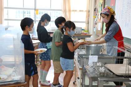 おかわりや、量を減らすときは担任の先生がやります。いろいろな人がトングを触ることのないようにするためです。