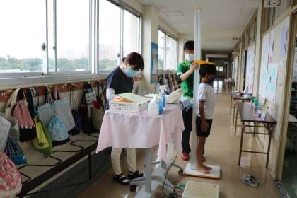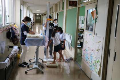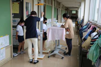 今日も出張型身体計測です。子供たちは場所を移動しないのでスムースに計測ができますし、学習もそれほど途切れることもありません。それにしても、教室の中も、廊下も静かであっという間に終わることにびっくりしてしまいます。