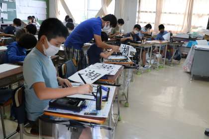 6年生「書写」の様子です。誰も教室にいないのかと思ったくらい静かに取り組んでいます。