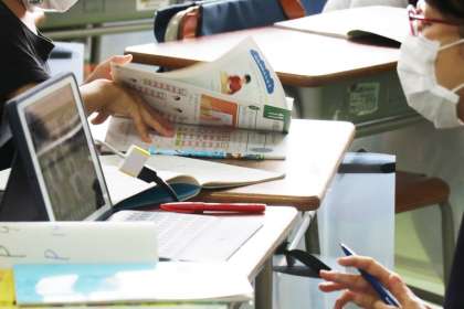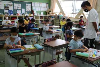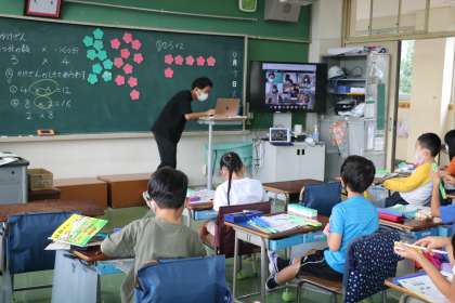 2年生算数の様子です。オンライン授業に参加している子供たちに、担任の先生たちは確認したり声掛けしたりしながら授業を進めています。見えづらいことや音声が途切れてしまうこともあるかと思います。困ったときはいつでも学校にご連絡ください。