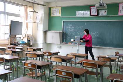 3年生のAグループの子供たちはオンライン授業です。先生が準備した共有画面を見ながら学習をすすめています。