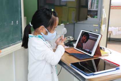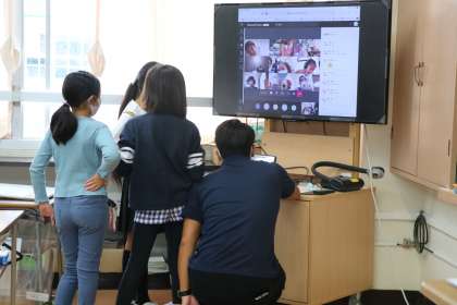休み時間もオンラインでつながっている友達ととしゃべりを楽しんでいる子や先生もいます。