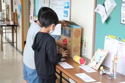 イベント係の企画を立てたり、賞品を作ったり、クラスの友達の自由研究を見せてもらったりしているのは3年生です。