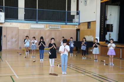 最後に3年生のリコーダーに、保存会の皆さんが太鼓や鐘を合わせてくださいました。子供たちもいろいろ感じたことがあったようです。