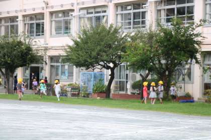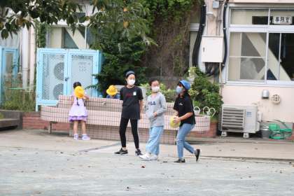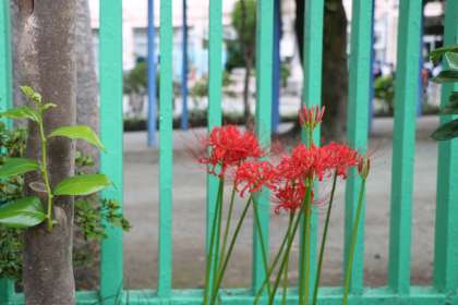 曇り空ですが暑すぎず寒すぎず、秋の気候です。正門横に咲いているヒガンバナを見つけ、ヒガンバナの特質や毒性について詳しく教えてくれる2年生の子がいました。