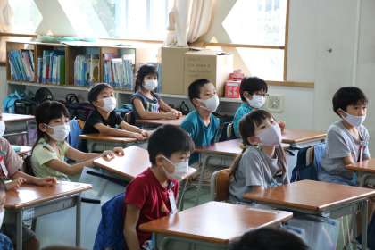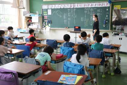 1年生教科「日本語」の様子です。道元という人の読んだ短歌を勉強しています。