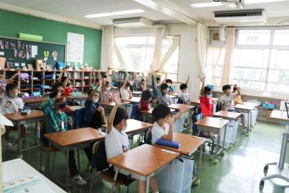 という短歌です。リズムを感じながら繰り返し繰り返し読みます。そして、短歌を読んで思ったことや気付いたことを交流します。みんな一生懸命読むので、暗唱してしまうほどです。先生が「もう見なくても短歌いえます!ていうひと?」と聞くとたくさん手が挙がりました。