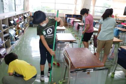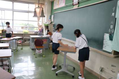 4年生は、金曜日以外の日の清掃も自問清掃に挑戦していると聞き見に行きました。静止画像は音まで撮影できませんが、本当に静粛に掃除をしています。