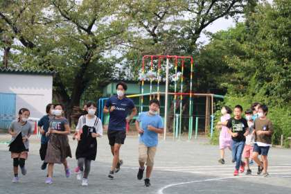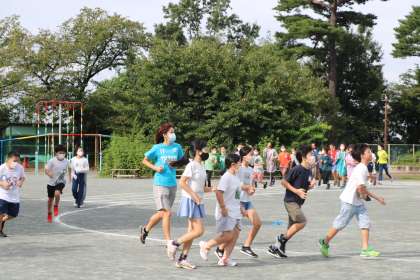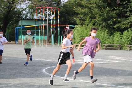 今朝のランランランは5年生です。走るときは息苦しくなるのでマスクをとって走ることを勧めています。5年生になると自分で判断できる子も多く、担任の先生が声をかけても「大丈夫!苦しくなる前に取ります!」「ランランランくらい軽く走っているなら大丈夫です!」などと返事が返ってきます。養護の先生も、いつもランランランの様子を見ています。