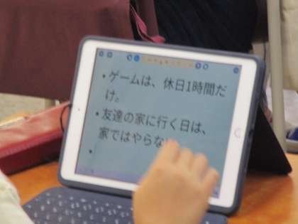 子供たちの周りにある切っても切れないメディア。タブレット、パソコンだけではありません。ゲーム、テレビ、スマホ様々なメディアを上手にコントロールしながら使うことが大切です。体への弊害、使用するにあたって気を付けていることをそれぞれ交流し合い、家でももう一度話題にし、家でのルールを確認してくることが宿題になりました。