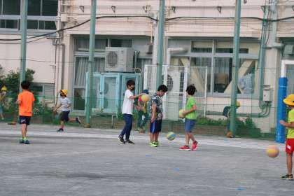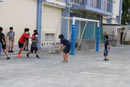 1年生だけではなく、高学年もよく遊びます。朝から元気いっぱいの姿が嬉しいです。
