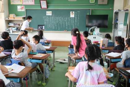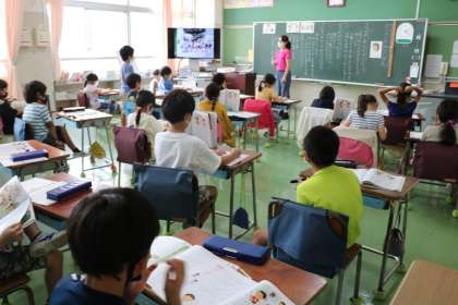 2年生の道徳の様子です。オンライン授業のお友達とも意見を交換し合います。友達の考えから、さらに多くのことを考えられる2年生です。