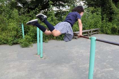 空中逆上がりやるから見て!とがんばる子。