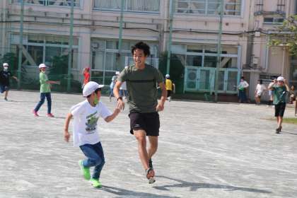 先生も子どもたちも笑顔いっぱいで遊んでいます。