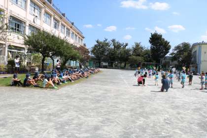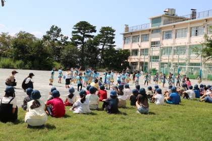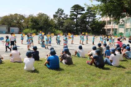 はじめに、年長さんが運動会で踊るダンスを見せてくれました。