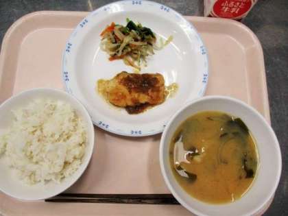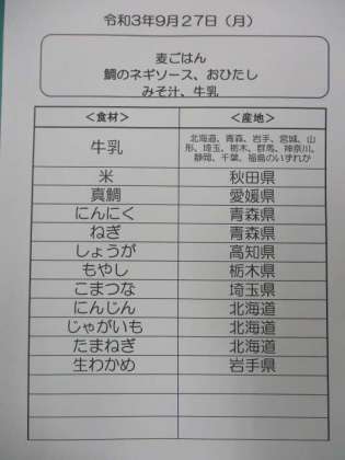 今日の真鯛は「農林水産省国産農水産物販路多様性緊急対策事業」で無償提供していただいたものです。愛媛県産の真鯛です。ふだんの給食では真鯛は高価でなかなか出すことが難しいのですが、この機会にこどもたちにおいしい真鯛を食べてもらうことができてよかったです。真鯛は片栗粉をつけて揚げた後、ねぎをつかったソースをかけました。