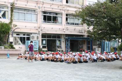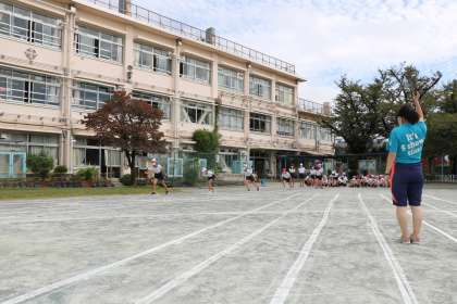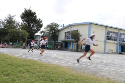 6年生体育・短距離走の練習の様子です。呼名をされて、しっかり返事をしスタートの雷管の合図を待ちます。練習から全力で取り組むすてきな6年生です。