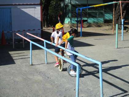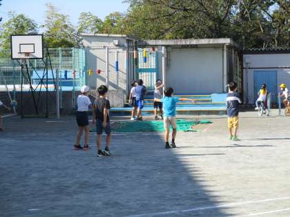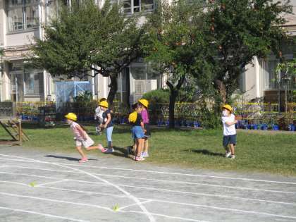 気持ちのよい秋空の下、今日も元気に朝遊びです。朝から子供たちの元気な声が校庭に響いています。