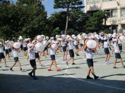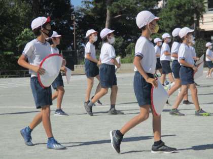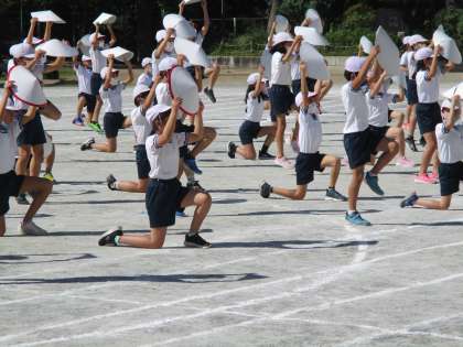 4年生の運動会の表現運動の練習風景です。今日から隊形移動の練習が始まりました。どの子も周りの子との間隔を意識して練習できていました。先生からたくさん褒めてもらいました。