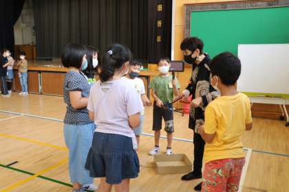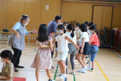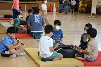 3年生石井戸囃の練習の様子です。保存会の皆さんが来てくださいました。写真は