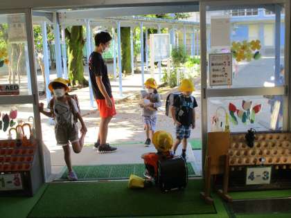 久しぶりの土曜授業日です。今日も元気に登校しています。校門で立っているとみんな気持ちよいあいさつをしてくれました。