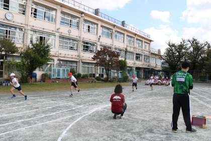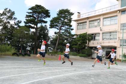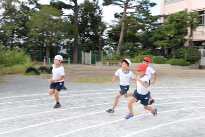 4年生運動会、短距離走の練習の様子です。コーナーを走る姿が力強いです。練習から真剣にそして全力で取り組んでいて、さすが4年生です。