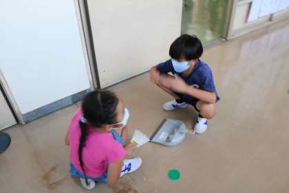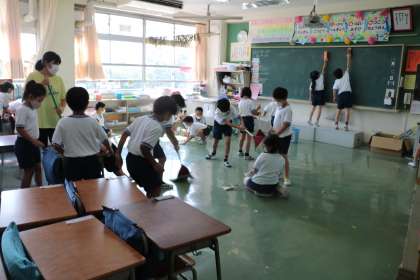 先生や友達と協力して、本当にどのクラスも黙々と一生懸命掃除をしています。