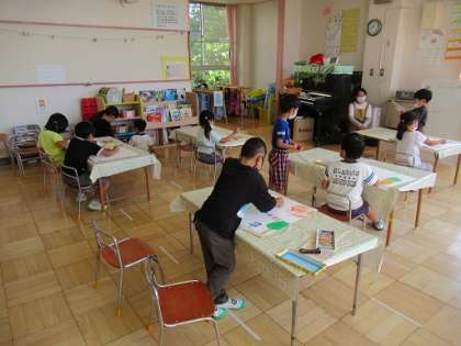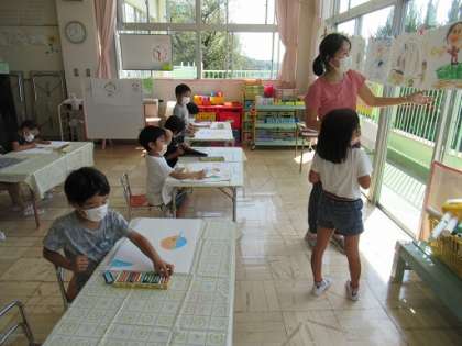 年長組さんは頑張った運動会を思い出しながら、経験画に取り組んでいました。