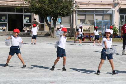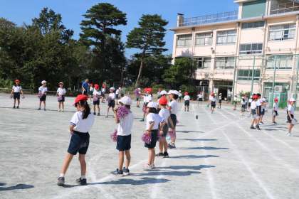 2年生運動会表現運動の練習の様子です。最後に1年生にも見せました。お兄さんお姉さんのかっこいい様子に1年生からたくさんの拍手をもらいました。