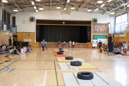 3年生石井戸囃の練習の様子です。役が決まり、練習する顔が更に真剣になりました。