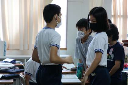 6年生の様子です。先生とやることを確認するとすぐに話し合いに取りかかったり、集中して先生の話を聞いたり、どちらの学級も6年生は学ぶ時も真剣です。