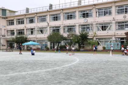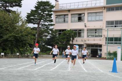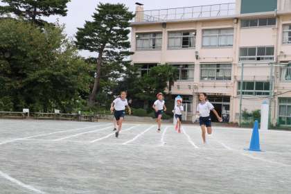 3年生短距離走の様子です。この角度・位置から当日「BAND」配信いたします。