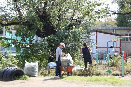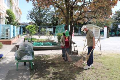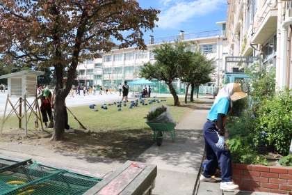 主事さんや事務さんも連日校庭の植栽をきれいにしてくれています。