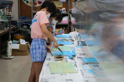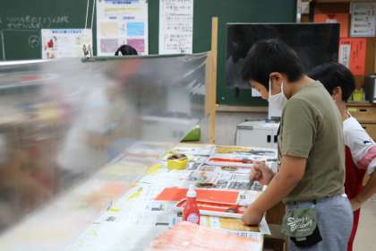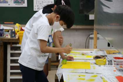 5年生図工「木版画」の様子です。今日はいよいよ刷りの日です。