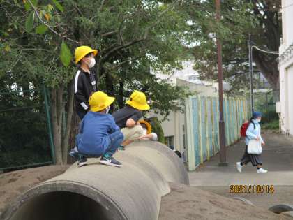 今日は朝遊びです。友達を誘って外遊びする子が多かったです。