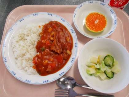 ハッシュドポークのハッシュドとは「細切りの」「薄切りの」という意味です。薄切りの肉とたっぷりの玉ねぎを使った料理です。ブラウンルウは小麦粉とバターを使って給食室で手作りしています。