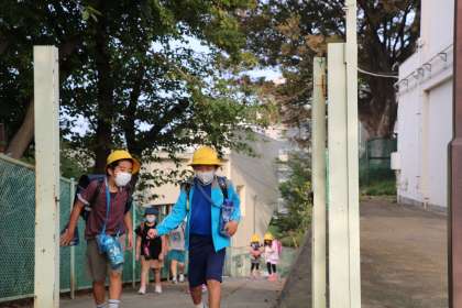 一週間の最後の一日です。今日は幼稚園門で子供たちを迎えます。朝夕は涼しくなりましたが、日中体を動かすと汗をかくこともあります。ご家庭で、調節できる服装にするようお声かけいただいている様子ありがとうございます。