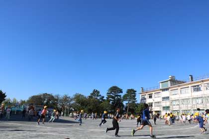 朝のランランラン、今日は1・2・3年生です。