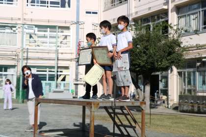 運動会で全力で一生懸命がんばる姿は立派だったこと、全力を出したからこそその人の力がぐんと伸びたこと、4月以来の全校ならんでいる姿はとても成長した立派な姿だということを話しました。