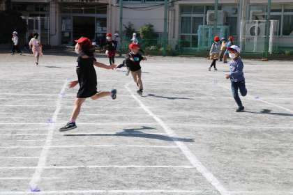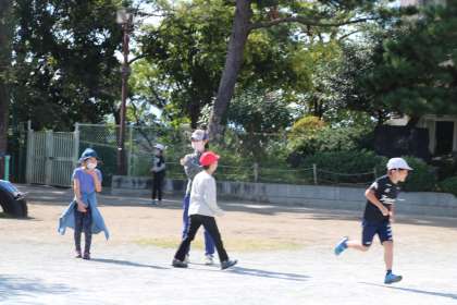 鬼ごっこで走り回ったり、先生と何をして遊ぼうか相談したり、昼休みはだいぶ気温も上がってきました。