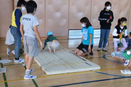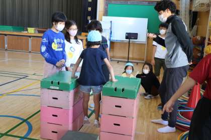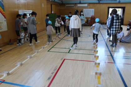 やり方のコツを5年生が教えてくれたり、見せてくれたりしています。5年生が一生懸命応援する声も励みになると嬉しいです。